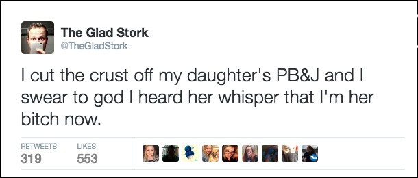 In today's Hilarious Images Daily post may I present to you a series of awesomely funny parents: The twitter edition. Some of these are very funny and they make parenting sound almost entertaining.